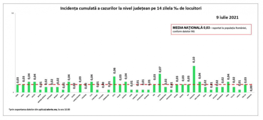 Minden megye és a főváros is zöld zónás, lakosságarányosan Prahova megyében a legmagasabb a fertőzöttségi ráta, 0,1 ezrelék.