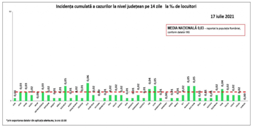 Minden megye és a főváros is zöld zónás, lakosságarányosan Kolozs megyében a legmagasabb a fertőzöttségi ráta, 0,06 ezrelék.