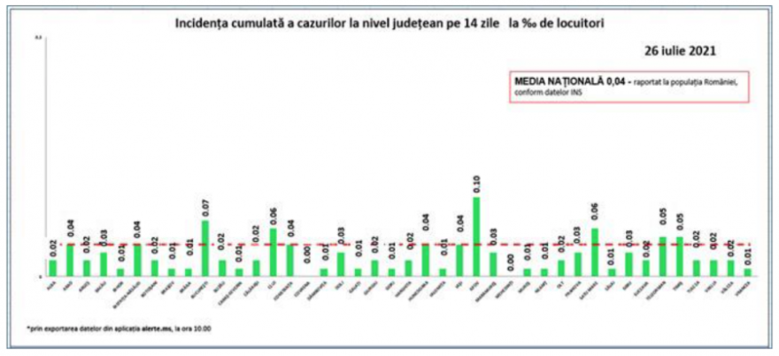Az összes megye és a főváros is zöld zónás, lakosságarányosan Bukarestben a legmagasabb a fertőzöttségi ráta, 0,07 ezrelék.