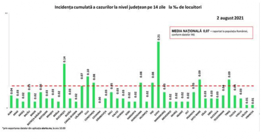 Az összes megye és a főváros is zöld zónás, lakosságarányosan Ilfov megyében a legmagasabb a fertőzöttségi ráta, 0,21 ezrelék.
