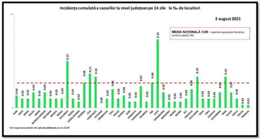 Az összes megye és a főváros is zöld zónás, lakosságarányosan Ilfov megyében a legmagasabb a fertőzöttségi ráta, 0,22 ezrelék.