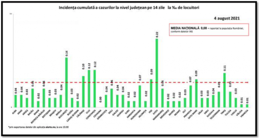Az összes megye és a főváros is zöld zónás, lakosságarányosan Ilfov megyében a legmagasabb a fertőzöttségi ráta, 0,22 ezrelék.