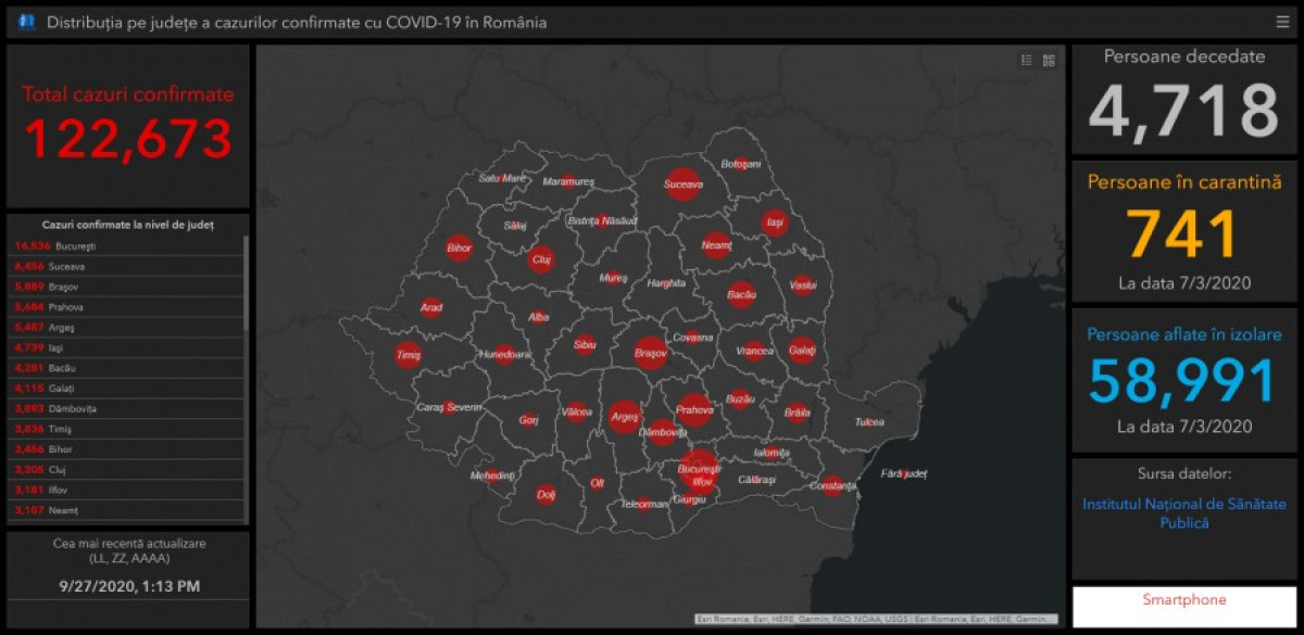 A GCS legfrissebb adatai szerint 122.673 fertőzést igazoltak eddig Románia területén.