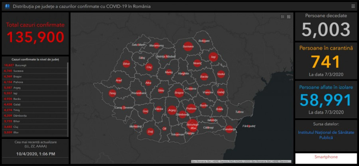 A GCS legfrissebb adatai szerint 135.900 koronavírusos fertőzést igazoltak eddig Románia területén.
