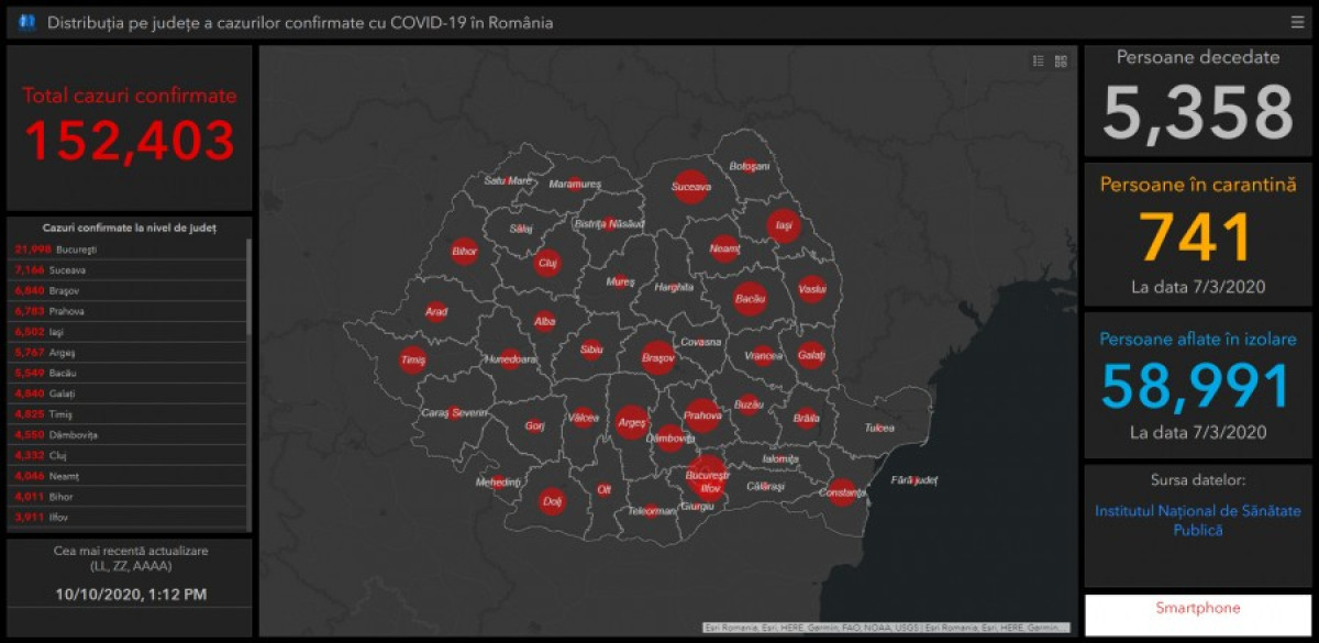 A GCS legfrissebb adatai szerint a járvány eleje óta 152.403 fertőzést igazoltak Románia területén.