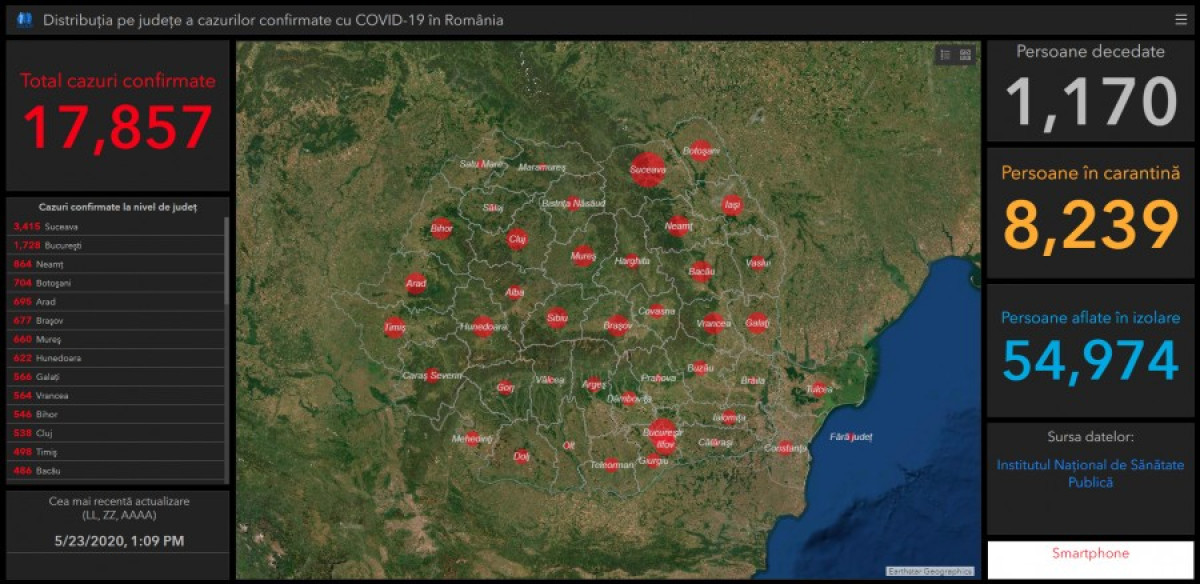 A GCS legfrissebb összesítése szerint 17.857 fertőzött személyt tartanak számon jelenleg Románia területén.