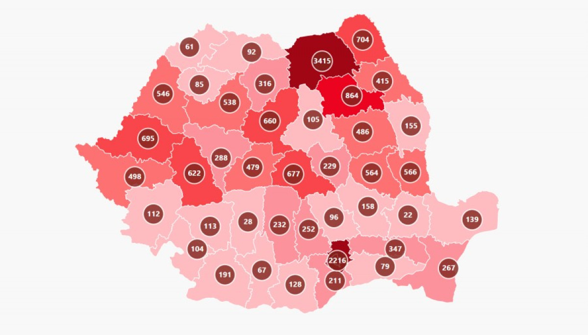 Változatlanul Suceava megyében és Bukarestben van a legtöbb koronavírusos beteg, 3415, illetve 1728 – derül ki a Stratégiai Kommunikációs Csoport (GCS) szombati tájékoztatásából.