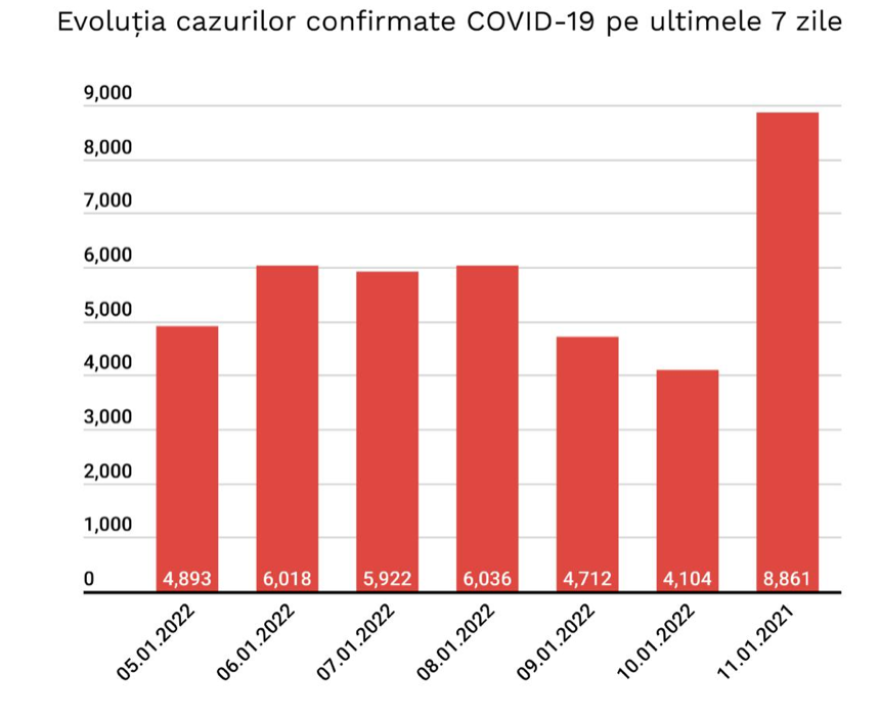 Míg 2022 első napján 1451 új esetet jegyeztek 24 óra alatt, tíz nap elteltével, kedden már 8861 új fertőzést regisztráltak.