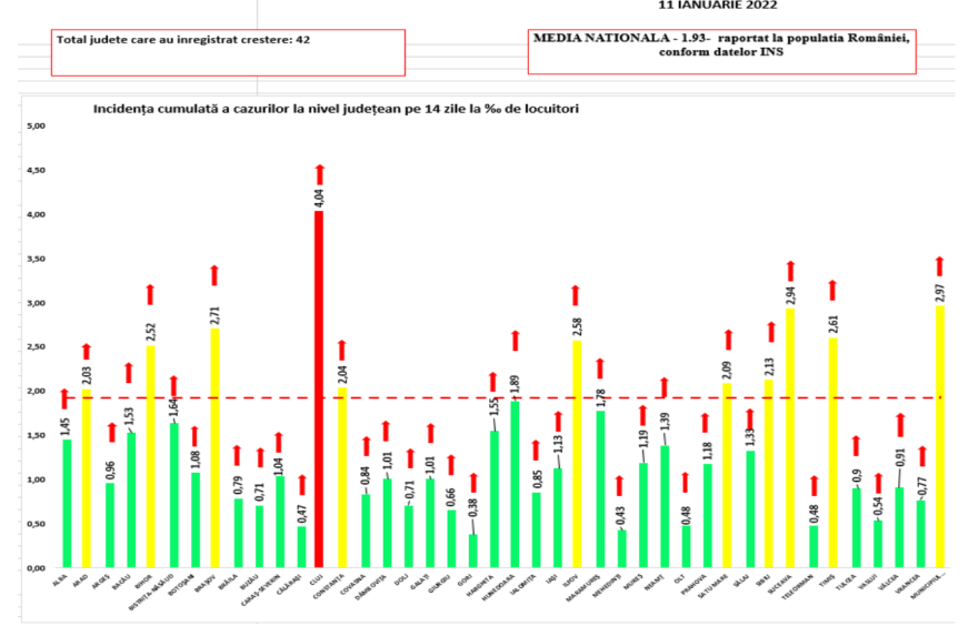 A Stratégiai Kommunikációs Csoport (GCS) tájékoztatása szerint a városok közül a legmagasabb fertőzöttségi rátát a Suceava megyei Rădăuţi-on (6,88) és Salceán (6,48), valamint a Brassó megyei Predeálon (6,47) jegyezték. Meghaladja az 5-öt az incidencia Kolozsváron (5,85) és a Suceava megyei Vatra Dorneion (5,47).