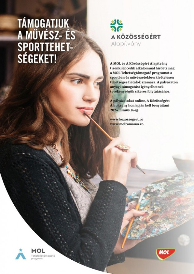 A MOL Tehetségtámogató keretében 8 és 18 év közötti művészek és sportolók pályázhatnak egyénileg vagy csoportosan, csapatok, együttesek, kórusok, színjátszók. A pályázatokat 2024. június 14-ig, online lehet benyújtani A Közösségért Alapítvány honlapján (www.kozossegert.ro). A pályázatnak tartalmaznia kell az utóbbi másfél évben elért eredményeket, a felkészítő tanár vagy edző ajánlását, a jövőbeni célok megfogalmazását és a célok eléréséhez tervezett pályázati költségvetést. Az idei kiírás támogatási alapja 560.000 lej. A 18 év feletti korcsoportban meghívásos alapon lehet pályázni.