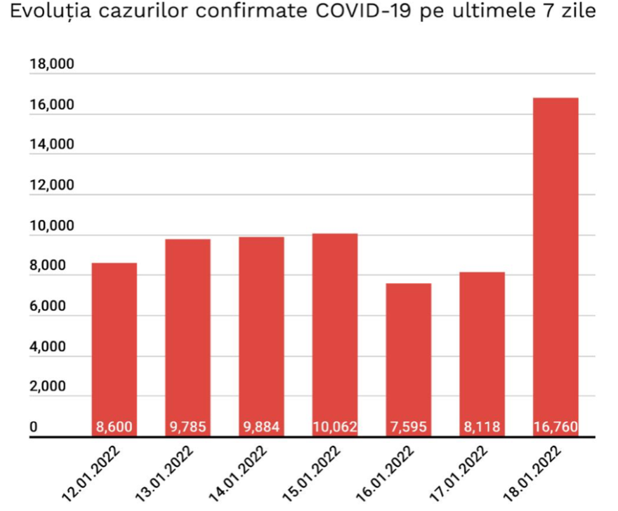 A legutóbbi tájékoztatás óta 16.760 új koronavírusos megbetegedést igazoltak Romániában – kétszer többet az előző nap jegyzett esetszámnál -, több mint 88 ezer teszt eredményének feldolgozása nyomán; 1697-en újrafertőződött betegek – közölte kedden a Stratégiai Kommunikációs Csoport (GCS).