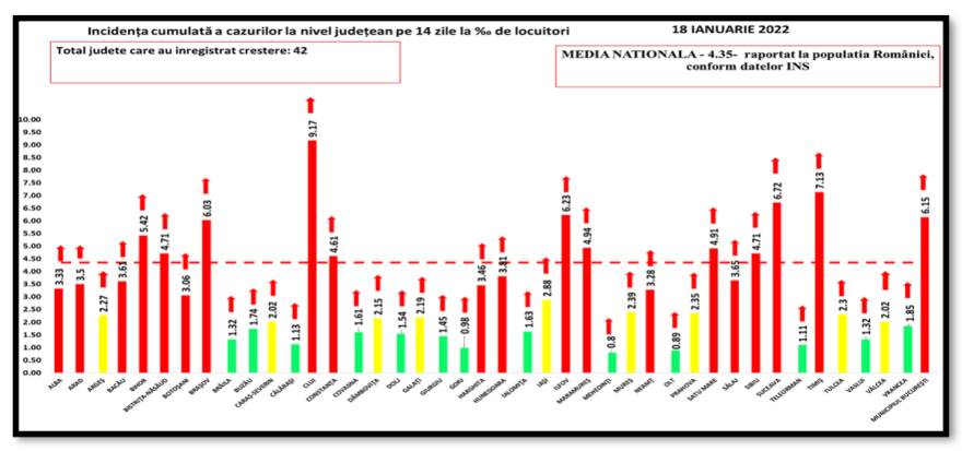 A legnagyobb incidenciát Kolozs (9,17), Temes (7,13) és Suceava (6,72) megyében jegyzik.