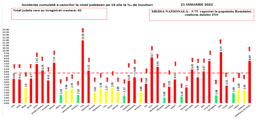 A fertőzöttségi ráta 15 ezrelék fölötti a Brassó megyei Predeálon (15,45), a Suceava megyei Sireten (15,34) és Rădăuţi-on (15,2), valamint 14 ezrelék fölötti a Kolozs megyei Désen (14,52).