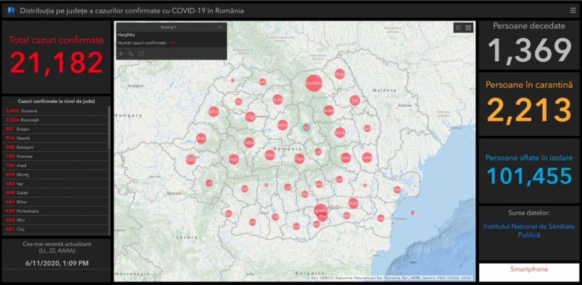 A GCS legfrissebb összesítése szerint 21.182 fertőzött személyt tartanak számon jelenleg Románia területén.