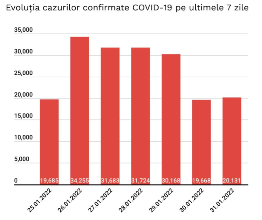 A szaktárca tájékoztatása szerint az elmúlt 24 órában 20.131 új koronavírusos megbetegedést jegyeztek Romániában 52.482 teszt eredményének feldolgozása nyomán, ami 38,36 százalékos pozitivitási arányt jelent.