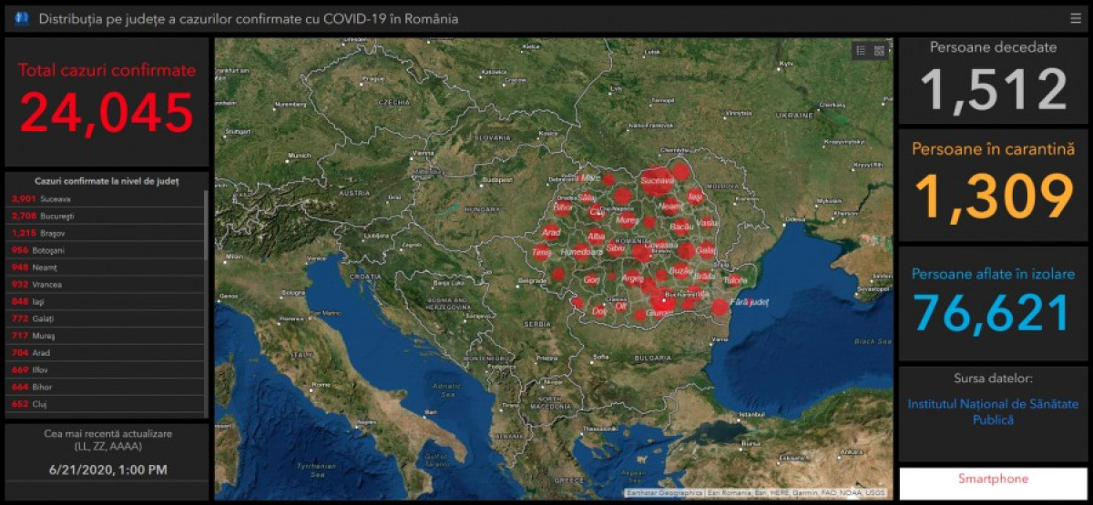 A GCS legfrissebb összesítése szerint 24.045 fertőzött személyt tartanak számon Románia területén.