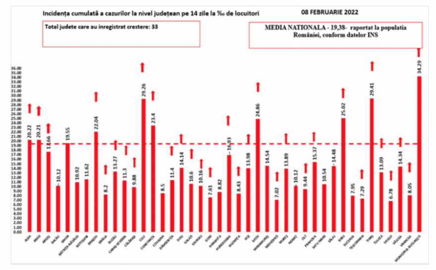 Bukarestben a fertőzöttségi ráta jelenleg 34,29 ezrelék. Hétfőn 32,75 ezrelék volt a mutató a fővárosban.