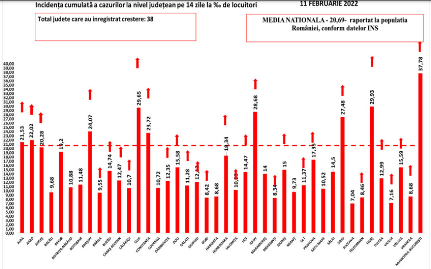 Bukarestben a fertőzöttségi ráta jelenleg 37,78 ezrelék, míg egy nappal korábban 36,09 ezrelék volt a mutató.
