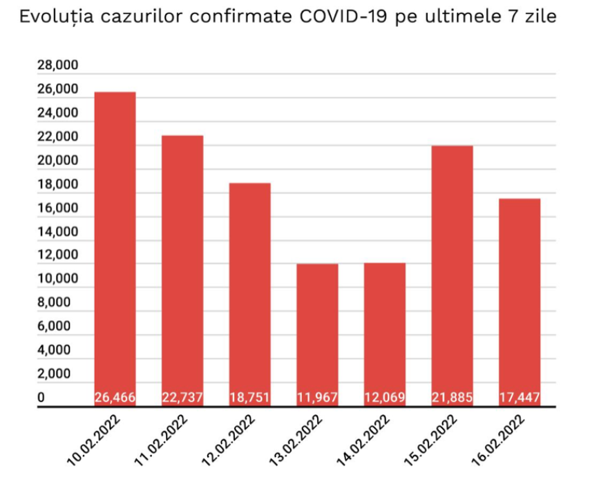 A legutóbbi tájékoztatás óta 17.447 új koronavírusos megbetegedést igazoltak Romániában – 4438-cal kevesebbet, mint egy nappal korábban -, több mint 73 ezer teszt eredményének feldolgozása nyomán; 2175-en újrafertőződött betegek – közölte szerdán a Stratégiai Kommunikációs Csoport (GCS).