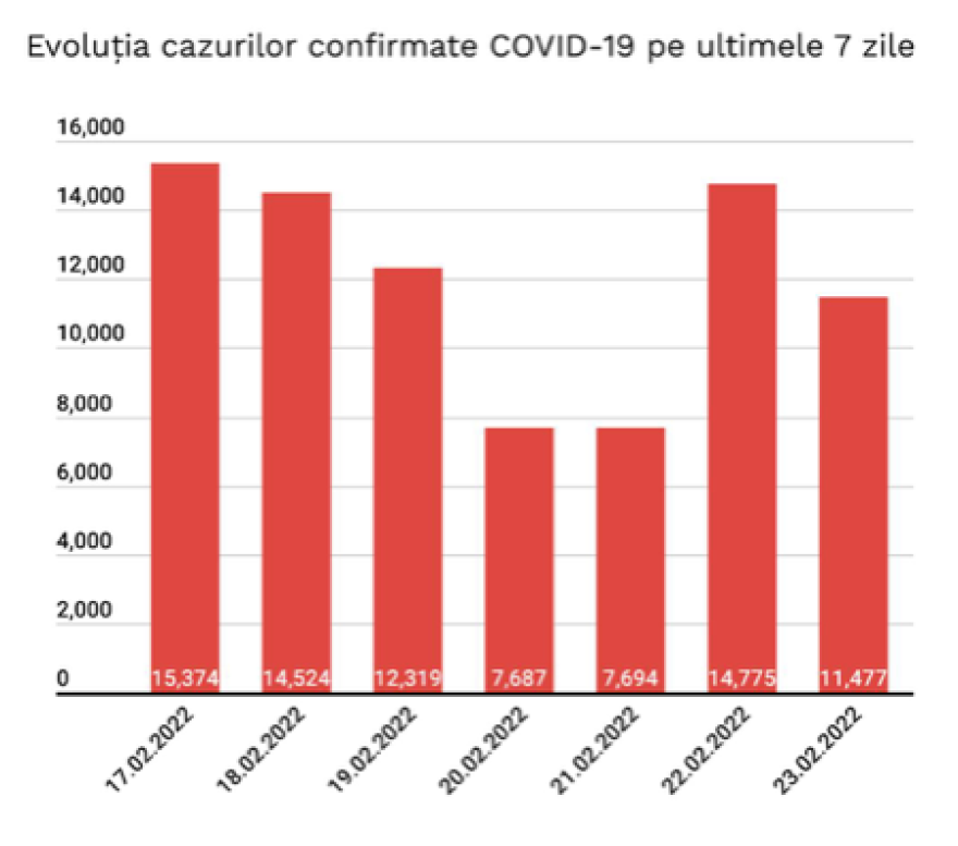 A legutóbbi tájékoztatás óta 11.477 új koronavírusos megbetegedést igazoltak Romániában – 3298-cal kevesebbet, mint egy nappal korábban -, több mint 62 ezer teszt eredményének feldolgozása nyomán; 1463-an újrafertőződött betegek – közölte szerdán a Stratégiai Kommunikációs Csoport (GCS).