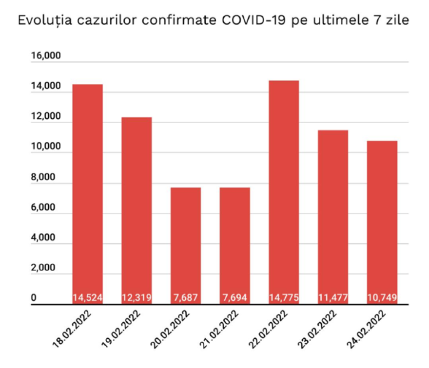 A legutóbbi tájékoztatás óta 10.749 új koronavírusos megbetegedést igazoltak Romániában – 728-cal kevesebbet, mint egy nappal korábban -, több mint 57 ezer teszt eredményének feldolgozása nyomán; 1256-an újrafertőződött betegek – közölte csütörtökön a Stratégiai Kommunikációs Csoport (GCS).