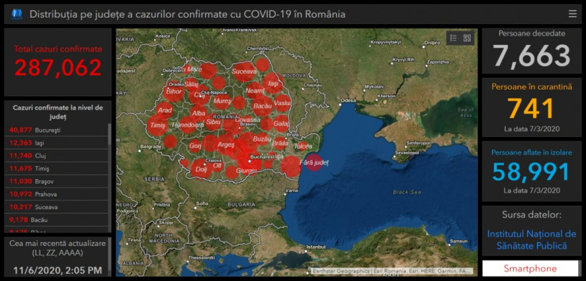 A GCS legfrissebb adatai szerint 287.062 fertőzést igazoltak eddig Románia területén.