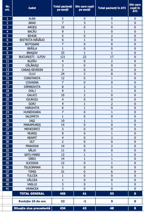456 személyt kezelnek kórházban Covid-19-cel, 22-vel többet, mint előző nap – jelentette pénteken az egészségügyi minisztérium.