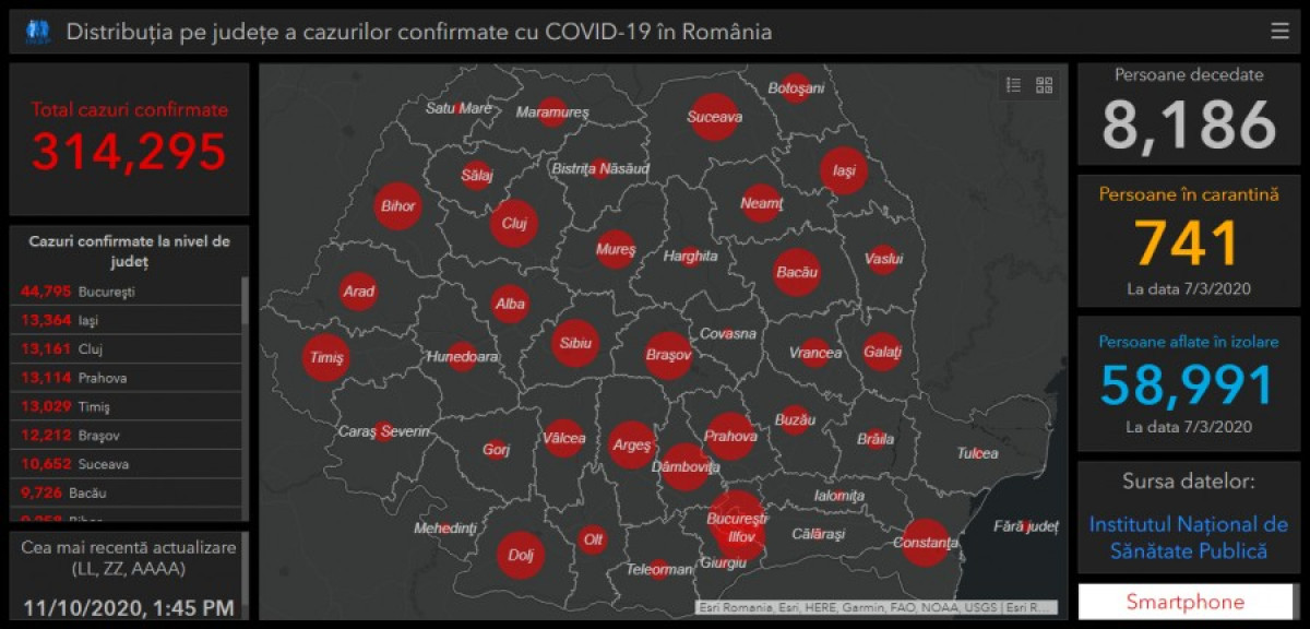 A GCS legfrissebb adatai szerint 314.295 fertőzést igazoltak eddig Románia területén.