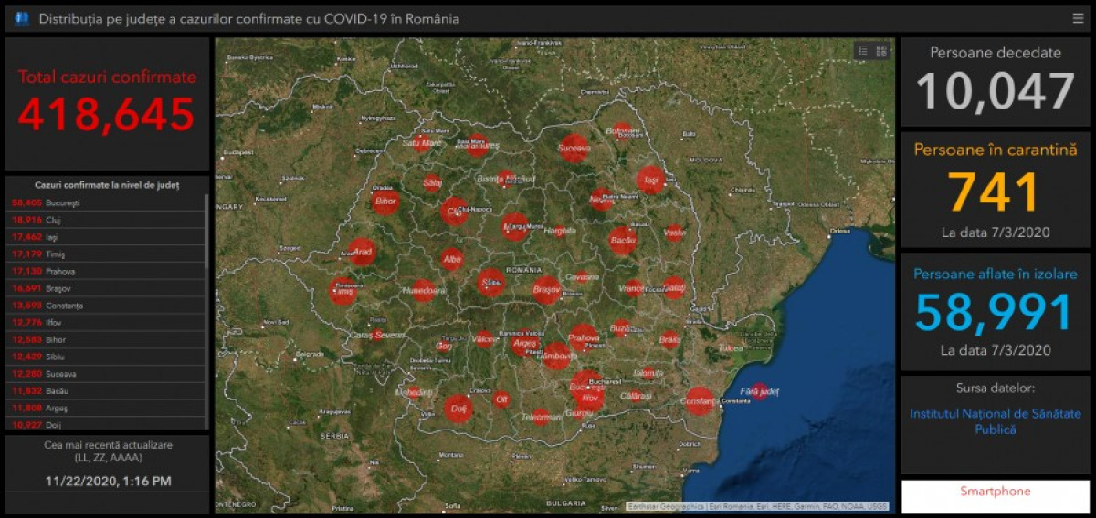 A GCS legfrissebb adatai szerint 418.645 fertőzést igazoltak eddig Románia területén.