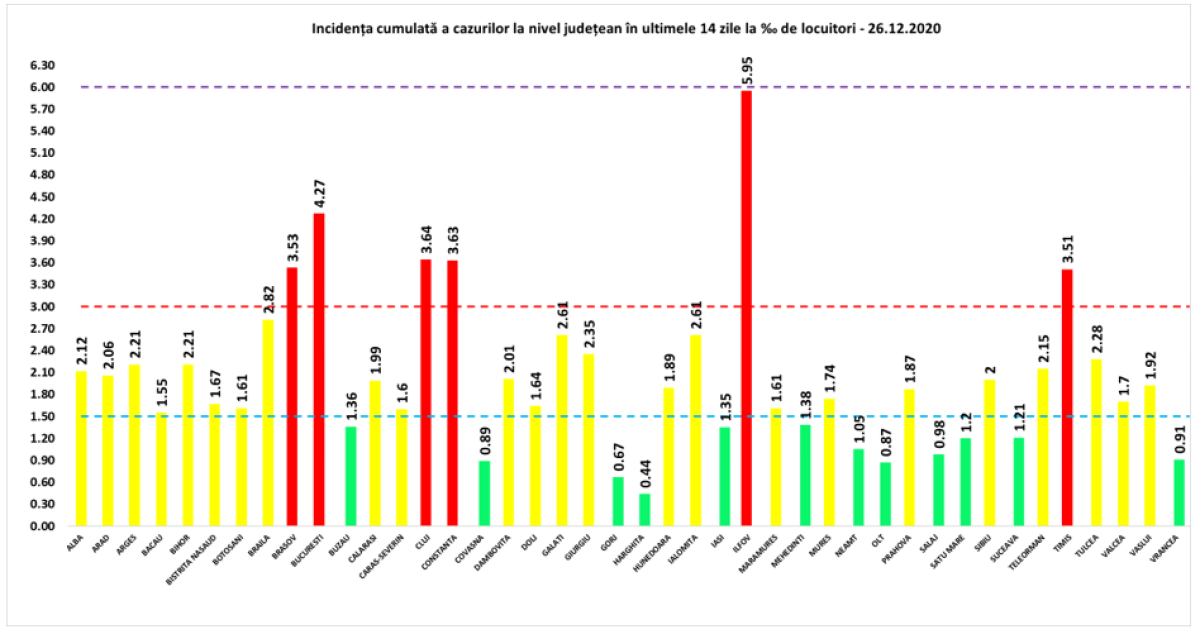 Továbbra is Ilfov megyében, Bukarestben és Konstanca megyében a legmagasabb az elmúlt 14 napban regisztrált új koronavírusos esetek száma ezer lakosra vetítve – tájékoztatott szombaton a Stratégiai Kommunikációs Csoport (GCS).