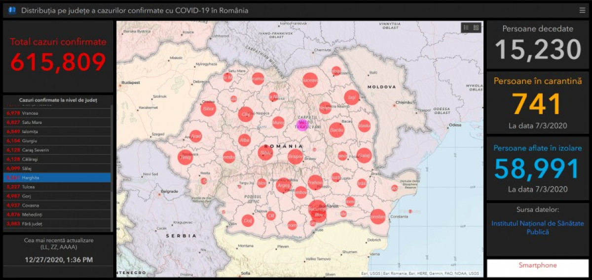 A GCS legfrissebb adatai szerint 615.809 SARS-CoV-2 megfertőződést igazoltak eddig Románia területén, 540.437 fertőzöttet gyógyultnak nyilvánítottak.