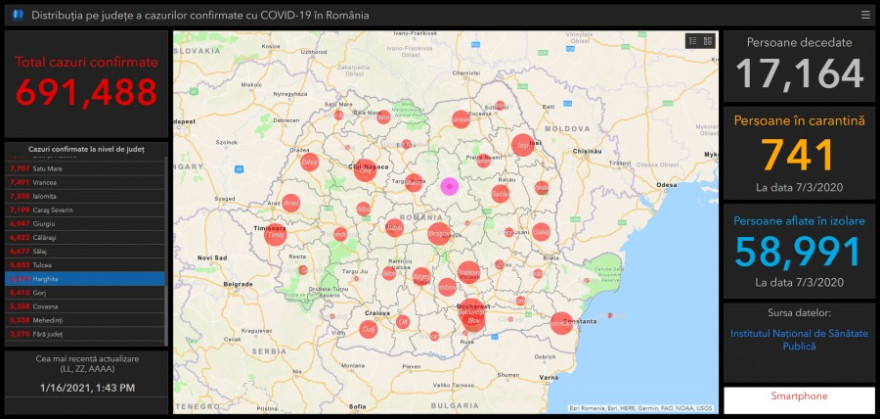 A legkevesebb új megbetegedést Kovászna – 14, Tulcea – 15, Ialomiţa – 16, Mehedinţi – 19, Szilágy – 22, Vrancea 23, Călăraşi – 25 és Hargita – 25 megyében regisztrálták.