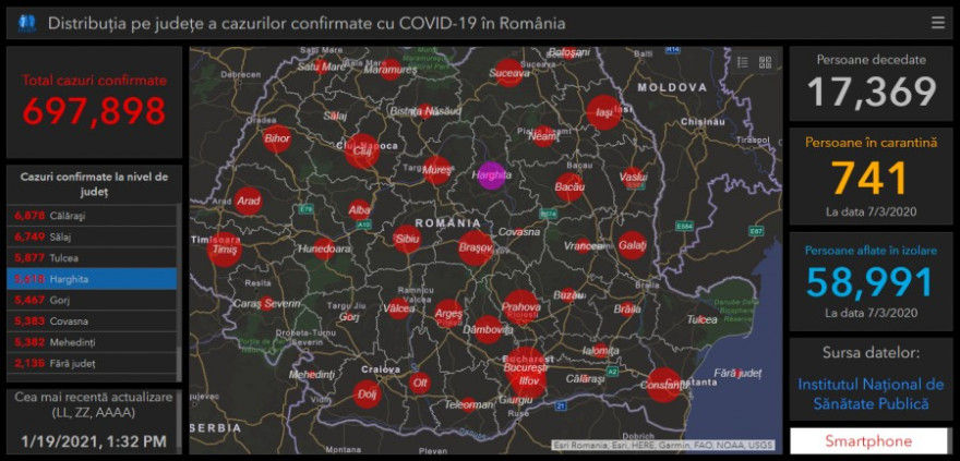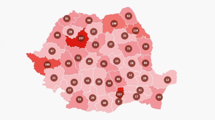 A legkevesebb új esetet Giurgiu – 9, Buzău és Tulcea – egyenként 12, Kovászna – 14, valamint Mehedinţi és Călăraşi megyében regisztrálták (utóbbiakban 17-17).