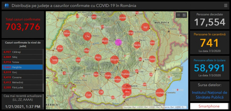 Az ország 16 megyéje a sárga, 23 megye pedig a zöld zónába tartozik, a legalacsonyabb fertőzöttségi rátát Olt – 0,54, Buzău – 0,63, Vrancea – 0,66, Hargita – 0,68 és Gorj – 0,89 megyében jegyzik.