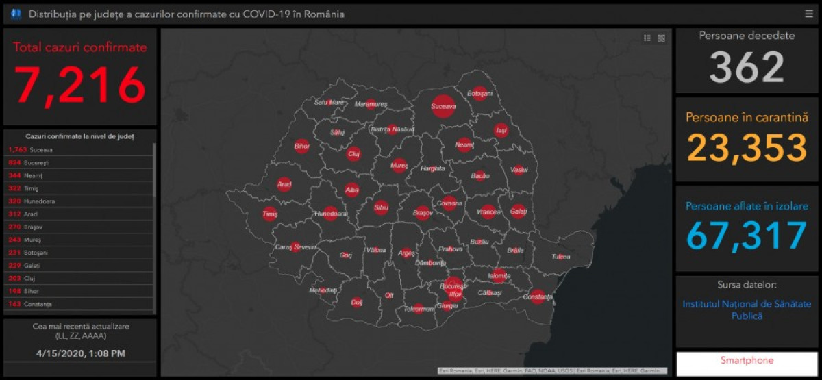 A GCS legfrissebb összesítése szerint összesen 7216 fertőzött személyt tartanak számon jelenleg Románia területén.