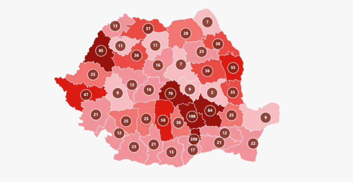 A GCS összesítésében szerepel 65 eset, amelyet egyik megyéhez sem rendeltek hozzá. A GCS legfrissebb adatai szerint 74.963 fertőzést igazoltak eddig Románia területén.