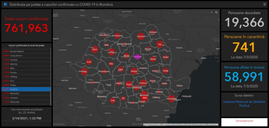 A legkevesebb új megbetegedést Kovászna – 5, Mehedinţi – 5, Hargita – 7, Vrancea – 9, Beszterce-Naszód – 11, Brăila – 14, Călăraşi – 14 és Botoşani – 15 megyében regisztrálták.