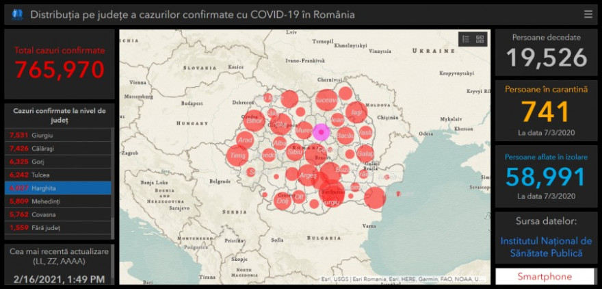 A legkevesebb új megbetegedést Tulcea – 8, Krassó-Szörény, Giurgiu és Hargita – mindben 11, Argeş – 15, Brăila és Kovászna – 16-16, Szilágy és Vrancea – 17-17 megyében regisztrálták.