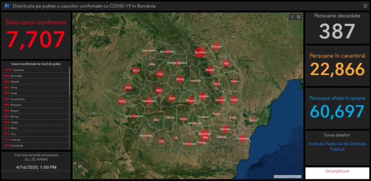 A GCS legfrissebb összesítése szerint 7707 fertőzött személyt tartanak számon jelenleg Románia területén.