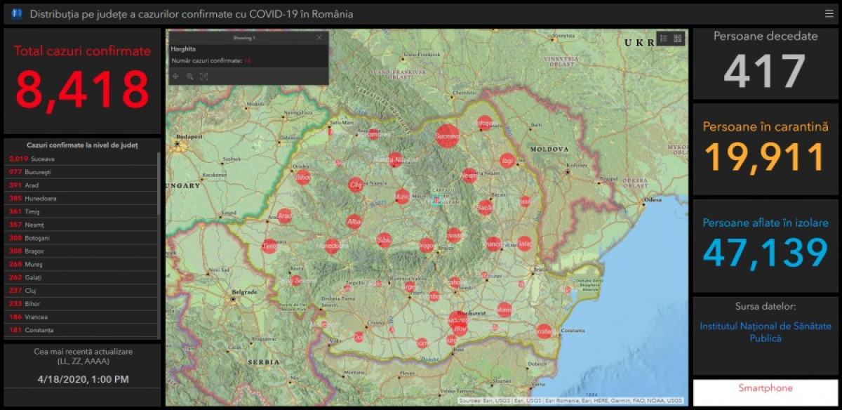 A GCS legfrissebb összesítése szerint 8418 fertőzött személyt tartanak számon jelenleg Románia területén.