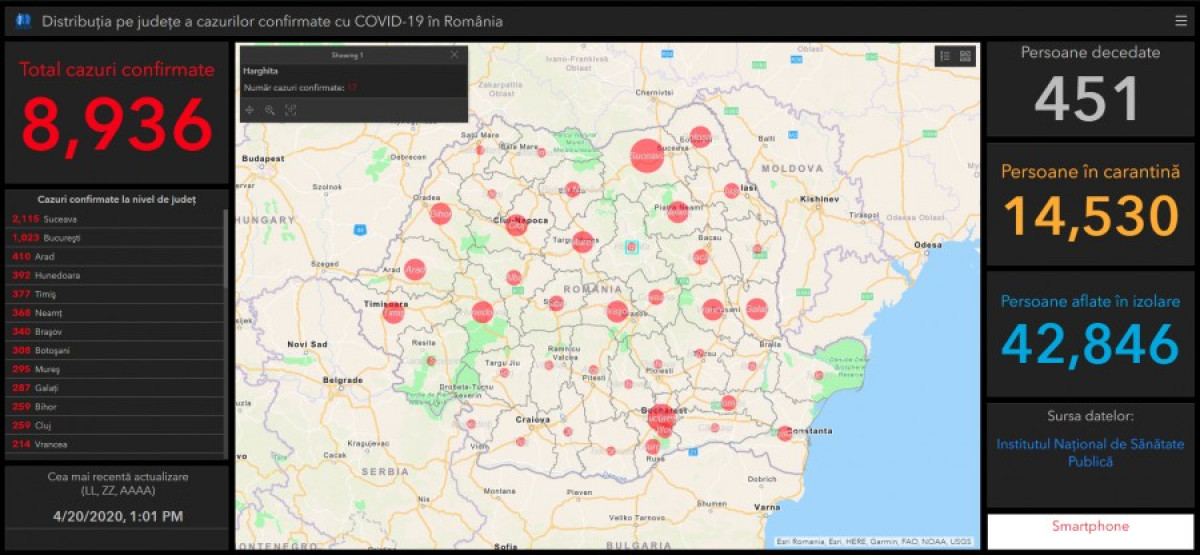 A GCS legfrissebb összesítése szerint 8936 fertőzött személyt tartanak számon jelenleg Románia területén.