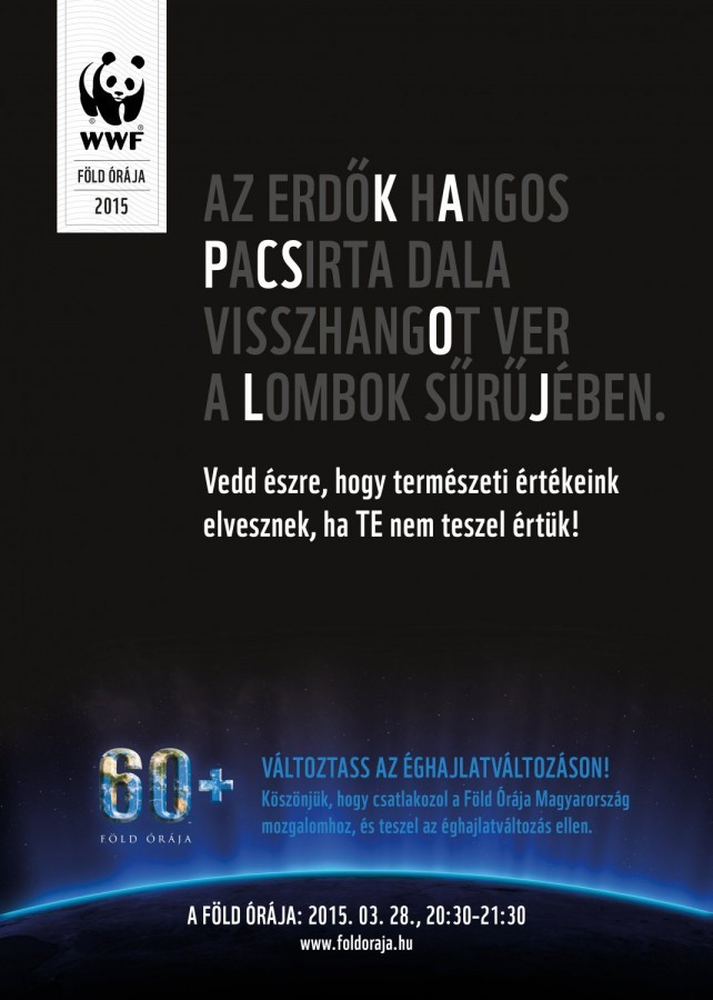 Kapcsolj, kapcsolódj, és kapcsold le!A Föld órája a WWF által életre hívott, minden év márciusának utolsó szombatján megrendezésre kerülő nemzetközi esemény, melyben arra kérik a háztartásokat és a vállalkozásokat, hogy kapcsolják le és ki a nem létfontosságú lámpáikat és elektromos berendezéseiket egy órára, hogy ezzel is felhívják a figyelmet a klímaváltozás elleni cselekvés szükségességére. A kezdeményezés 2007-ben indult Ausztráliából, és 2008-ban vált nemzetközivé.