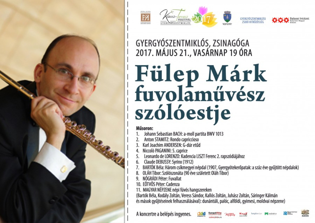 A Klassz–Tavasz Fesztivált Fülep Márk fuvolaművész koncertjével zárjuk május 21-én, vasárnap este hét órakor a gyergyószentmiklósi zsinagógában.