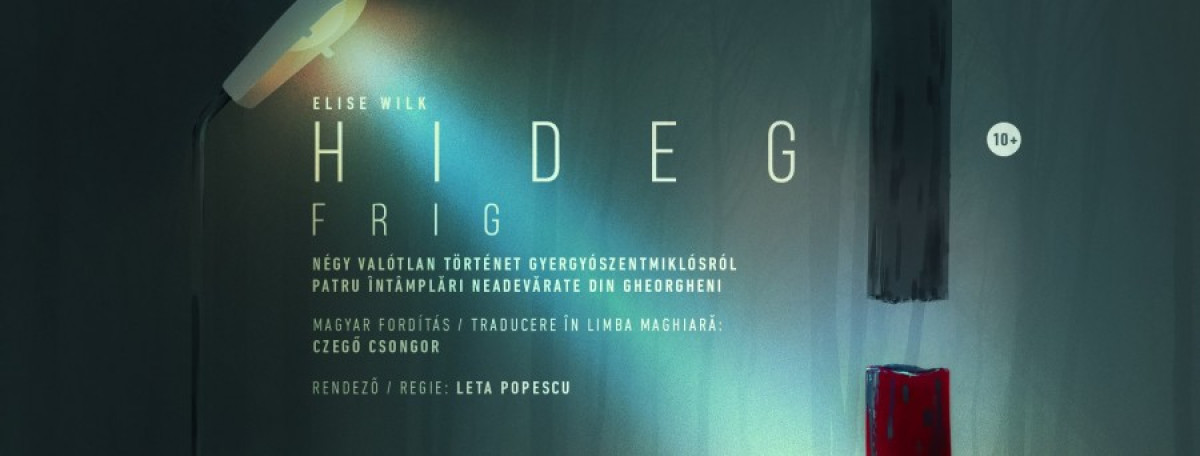 A Hideg – melynek alcíme: Négy valótlan történet Gyergyószentmiklósról – egy olyan előadás, melynek négy melankolikus, komikus és rejtélyes történetében önmagukra ismerhetnek a gyergyószentmiklósiak. Megtudhatjuk például a hokipálya és a gyergyói hokicsapat történetét. Mindezt az utcalámpák fényében. Kiderül, milyen egy különös találkozás mínusz 50 fokban és feltehetjük a kérdést: Csíkszeredában, vagy Gyergyószentmiklóson van hidegebb? Az előadás szól még rejtélyes eltűnésekről, borvízforrásokról és végtelen krumpliföldekről. És közben felbukkan az örök fiatalság titkát jelentő kék fény is. A produkció nem sorolható be a klasszikus műfaji kategóriákba, de tartalmaz borzalmakat, szerelmet, rejtélyt… és egy kis sci-fit is.