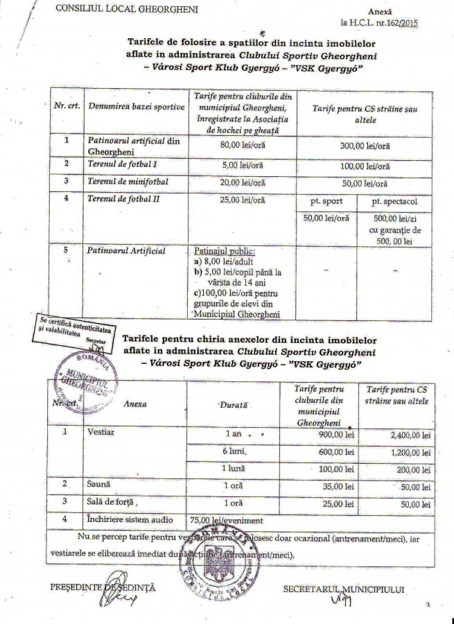 Tisztelt személyemet lejáratni szándékozó „uraim”, gondolom, nem ismeretlen az önök számára a 162-es számú 2015. szeptember 17-én megszavazott tanácshatározat tartalma. Vagy, ha esetleg nem volt idejük az áttanulmányozására, mivel idejük nagy részét a személyem elleni lejáratás felemésztette, tudomásukra hozom, és nem csupán önök, hanem minden érdekelt fél számára, miszerint a jégpálya, az öltözők, a futballpálya stb. használati díját a gyergyószentmiklósi tanács szavazta meg egyöntetűen, én csupán végrehajtom az általuk megszabott díjak begyűjtését!