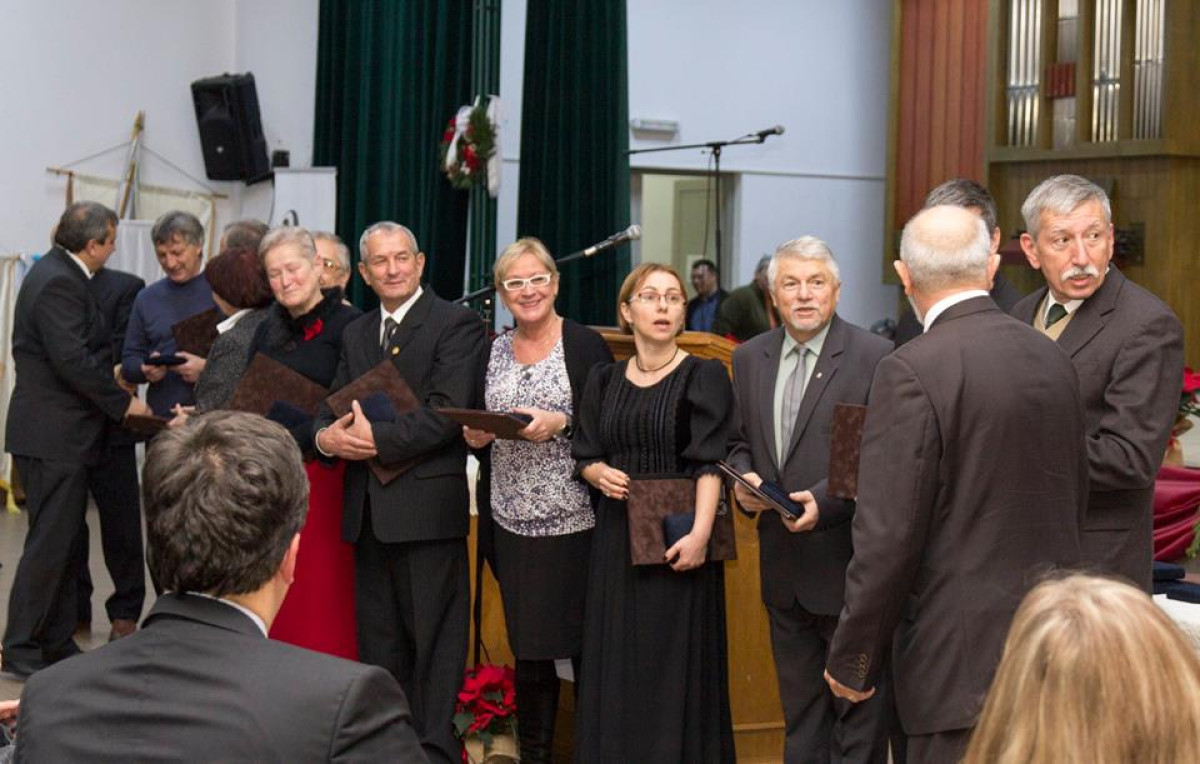 Tisztelt Elnök Úr! Engedje meg, hogy nagyra becsült tevékenységük eme áldásos jubileumán őszinte elismerésemet fejezzem ki eddig elvégzett munkájukért, melyet nagyobbrészt jeles elődjének, Lászlófy Pál tanár úrnak a neve fémjelzett. Az alkalomhoz illően ezúton jelentem be, hogy érdemei elismeréseképpen az Erdélyi Magyar Nemzeti Tanács Kós Károly-díjjal tünteti ki a Szövetség tiszteletbeli elnökét.