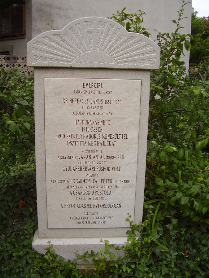A hajdúk földjére és annak fővárosába, Debrecenbe 1916 szeptemberében 20 ezer székely menekült érkezett, onnan vezényelték tovább őket Hajdú vármegye különböző településeire. Az Alföld északi peremén fekvő, akkor 17 ezer lakosú Hajdúnánás 3200, főként Csík vármegye településeiről érkezett menekültet fogadott be. Gyermekként közöttük volt Jakab Antal, a későbbi gyulafehérvári megyéspüspök – édesanyjával és négy testvérével együtt kéttehenes szekérfogattal tették meg a mintegy ötszáz kilométeres utat s ugyanazzal a fogattal tértek is vissza egy esztendő múltán –, és Domokos Pál Péter, a majdani neves néprajztudós, a moldvai csángók apostola is. Az elmenekült székelyek többsége számára a szülőföldtől való kényszerű távollét egy évnél is hosszabb időt jelentett; az utolsó szerelvények 1918 tavaszán-nyarán indultak vissza velük Székelyföldre.