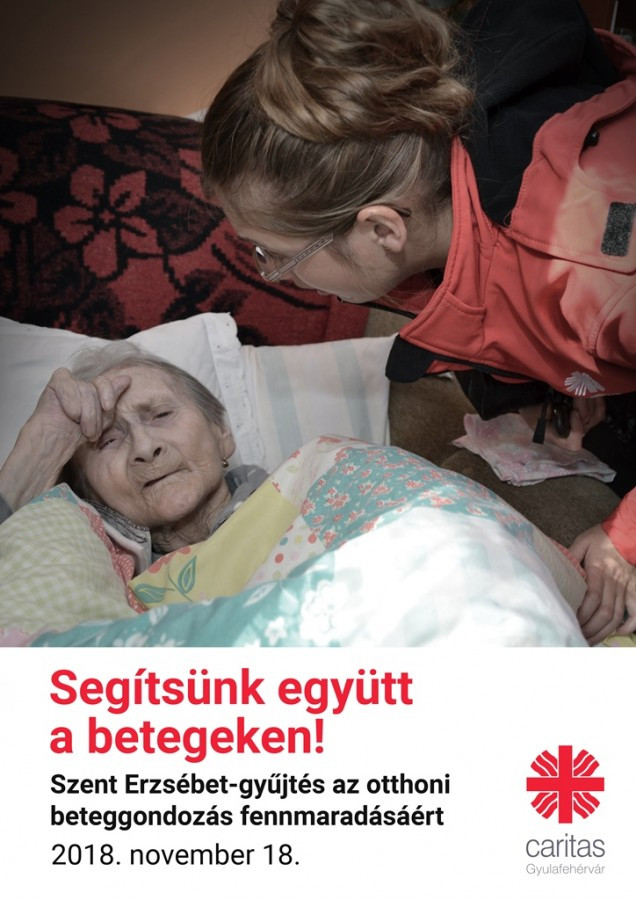 Ebben az évben a betegek megsegítésére, az őket támogató otthoni beteggondozó szolgálat fennmaradására gyűjt Szent Erzsébet napján a Gyulafehérvári Caritas. Tavaly 225.522 lej gyűlt össze, amelyet a hátrányos helyzetű gyermekek oktatására, az őket támogató programokra fordított a szervezet. A Gyulafehérvári Caritas áldozatos munkával évtizedek alatt építette ki otthoni beteggondozó szolgálatát, amelynek tevékenységét ahelyett, hogy támogatná, az utóbbi időben inkább ellehetetleníti a következetlen állami támogatói rendszer és a nem megfelelő jogszabályozás. Ezért minden kis forrásra szükség van, hogy a szervezet folytatni tudja tevékenységét a rászoruló idősek és betegek ápolása érdekében.