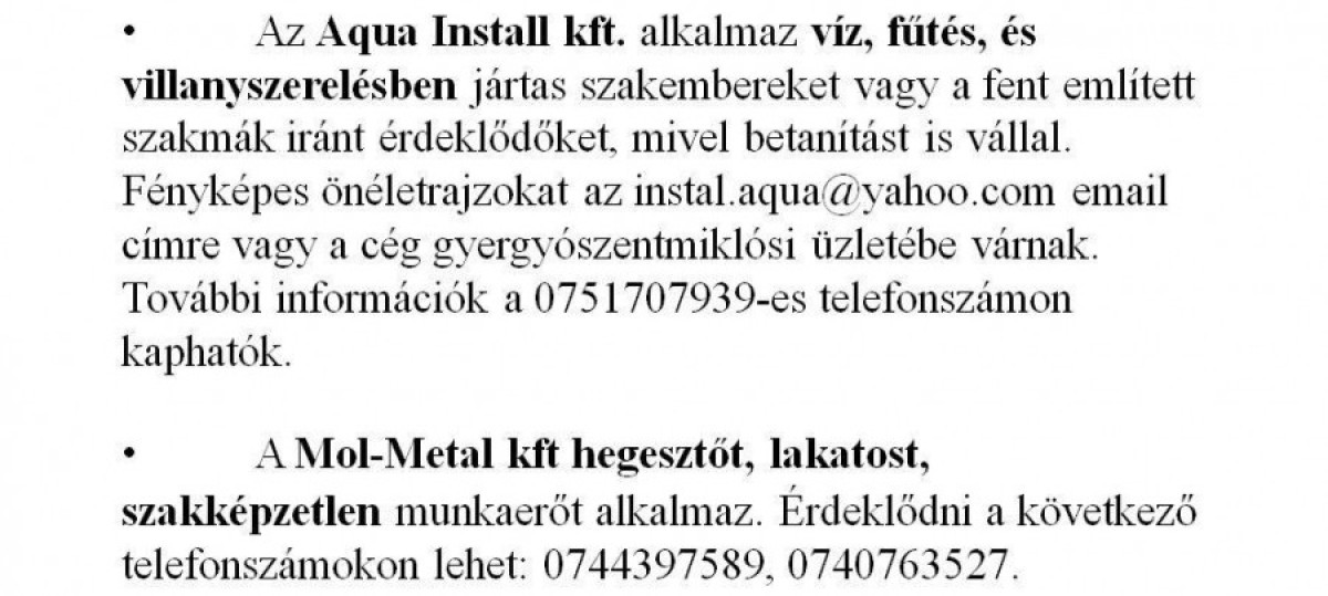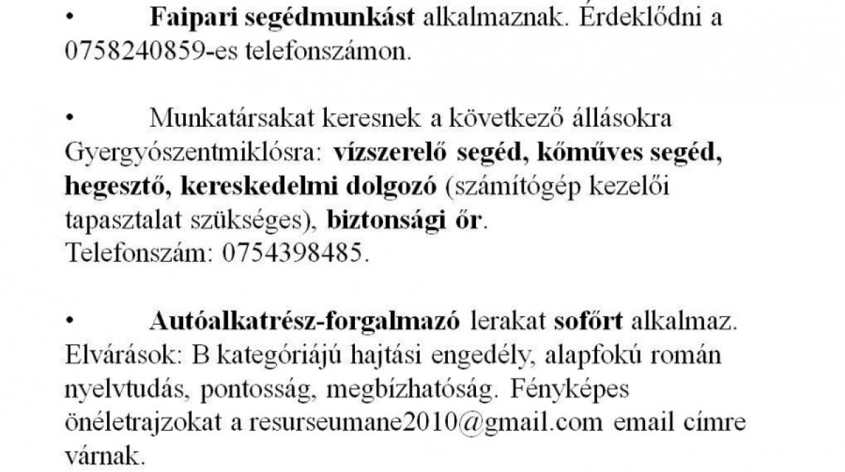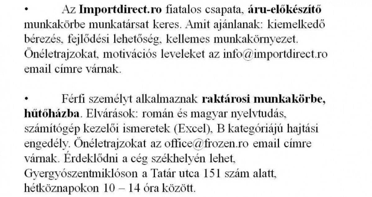 Munkalehetőségek álláskeresőknek