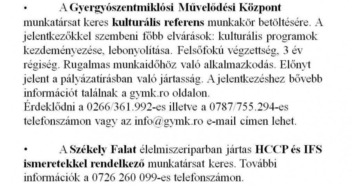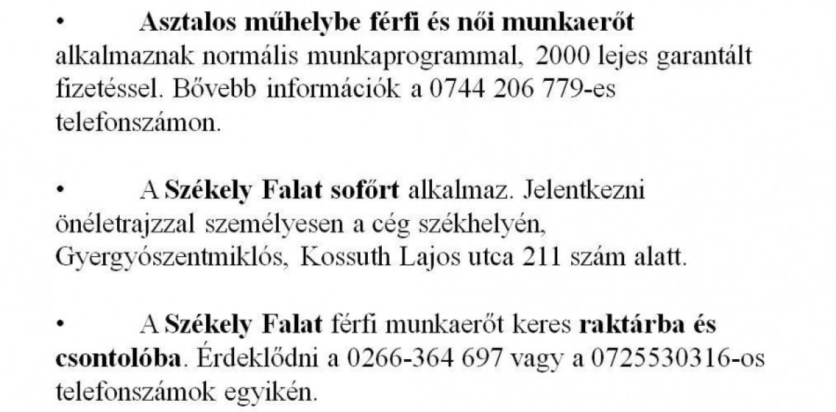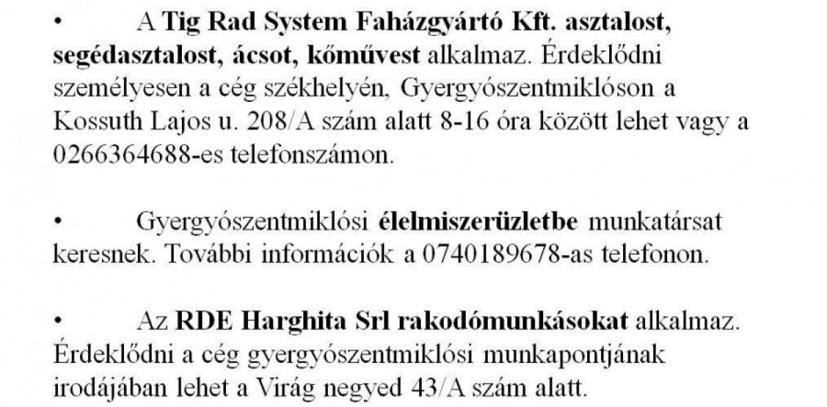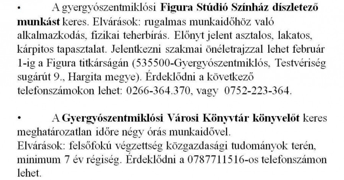Munkalehetőségek álláskeresőknek